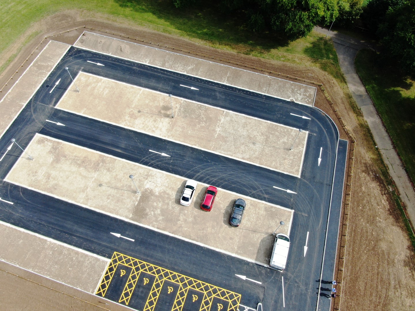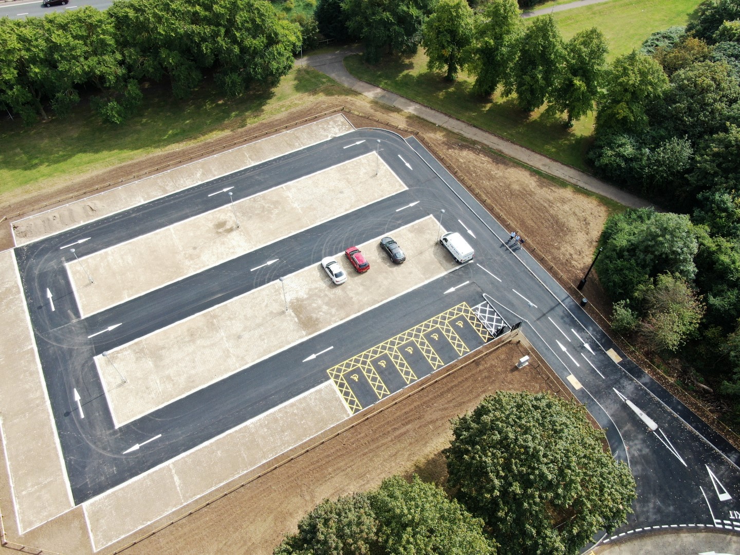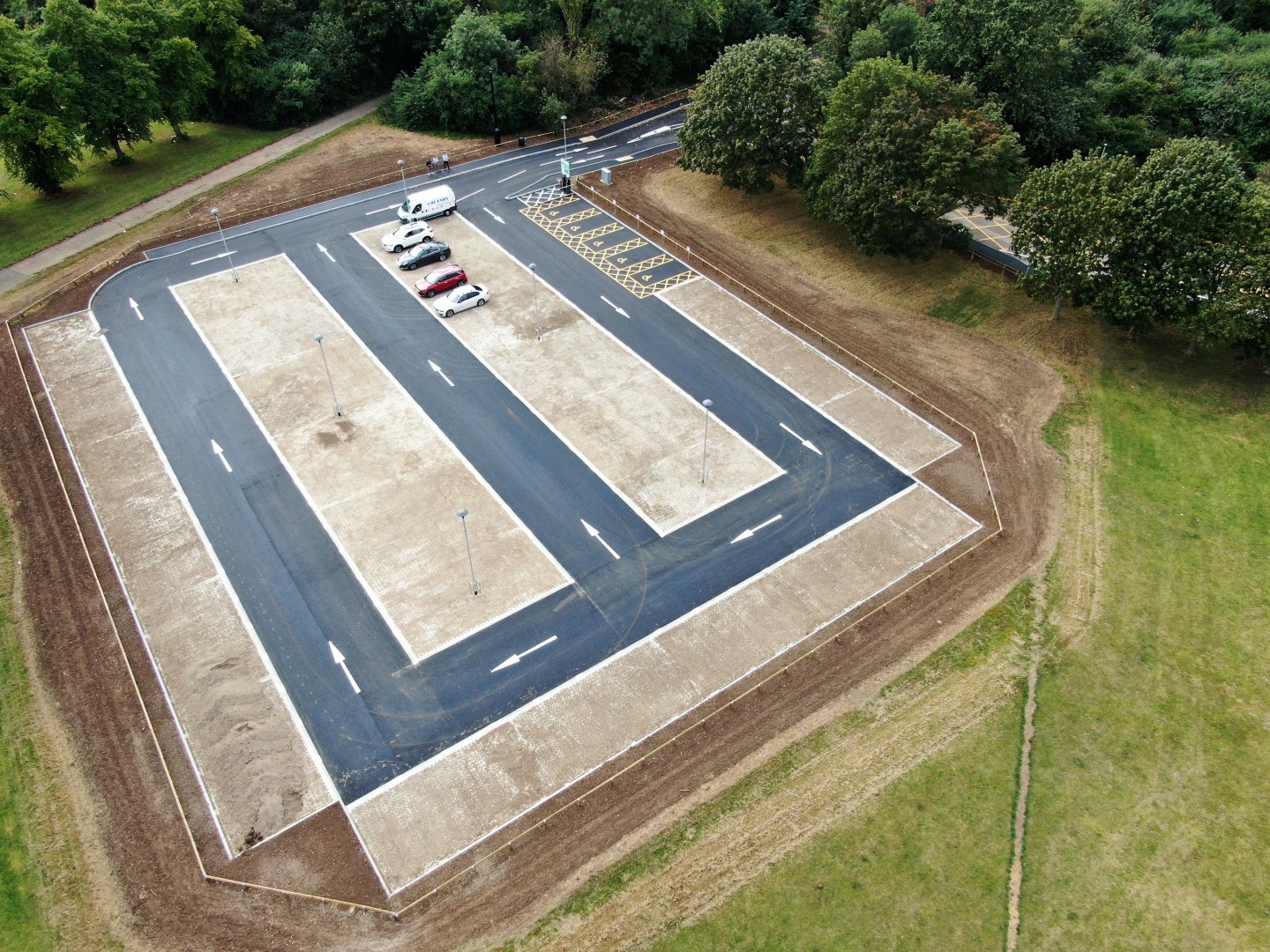 Originally a green space within a local park, PCC required additional parking for the nearby leisure centre and approval was gained to construct a temporary car park.
