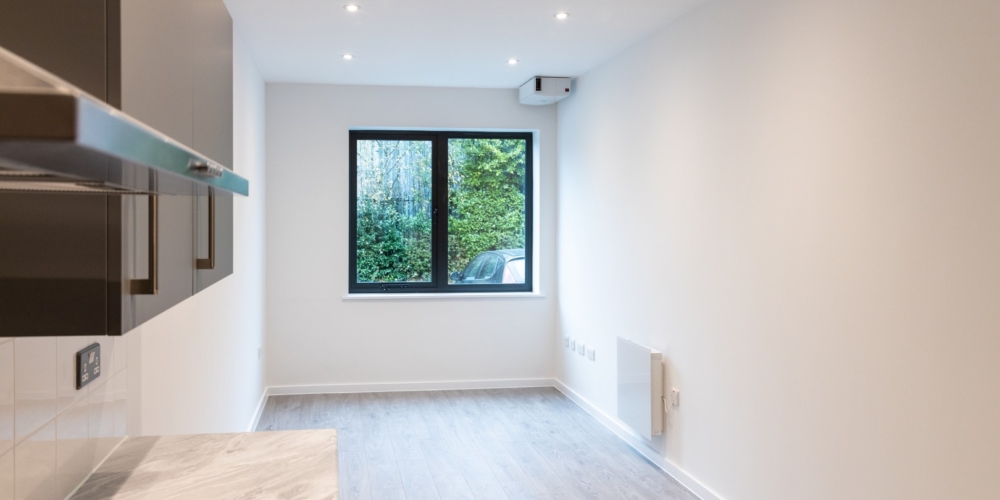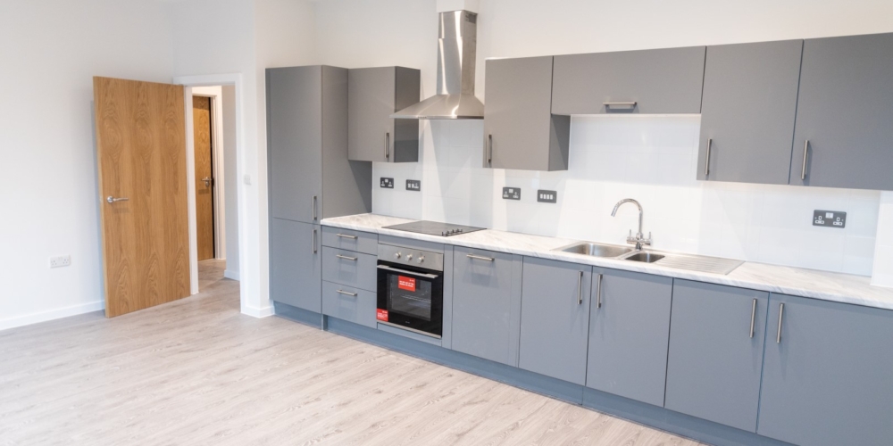509 Coldhams Lane was originally a large office block that was spread over two floors with excellent parking facilities.  The client came up with the ambitious plan to develop the once commercial office block into high end residential apartments within the city centre under permitted development rights. The project commenced with the strip out of all fixtures, fittings, m&e, walls and ceilings taking the building back to the basic structure. To form the new apartments we installed new drainage to the ground floor, screed and insulation to both GF and FF, full height partitions to form the fire compartmentalisation to each apartment, full M&E fit out of which was designed by Coulsons, high end floor finishes throughout, internal doors, ceiling finishes and symphony kitchens along with all the appliances. There were very minor external works mainly consisting of cleaning and a small amount of landscaping.