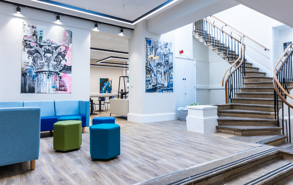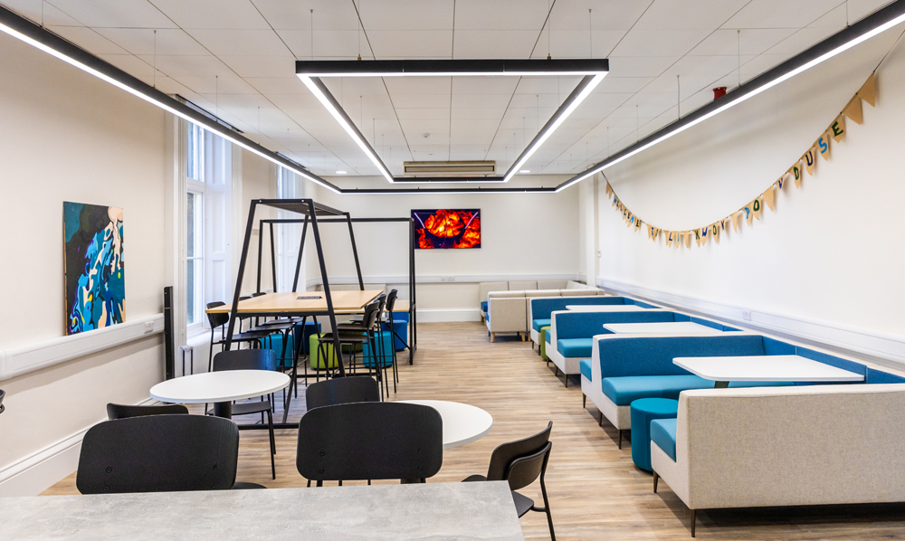 The main works consisted of an internal refurbishment to produce new teaching and social spaces. The ground floor consisted of new WCs and changing facilities, a pupils lounge, collaborative and social space along with a communal kitchen. The first and second floor involved the formation of tutor rooms, offices, kitchen and sicks bays.