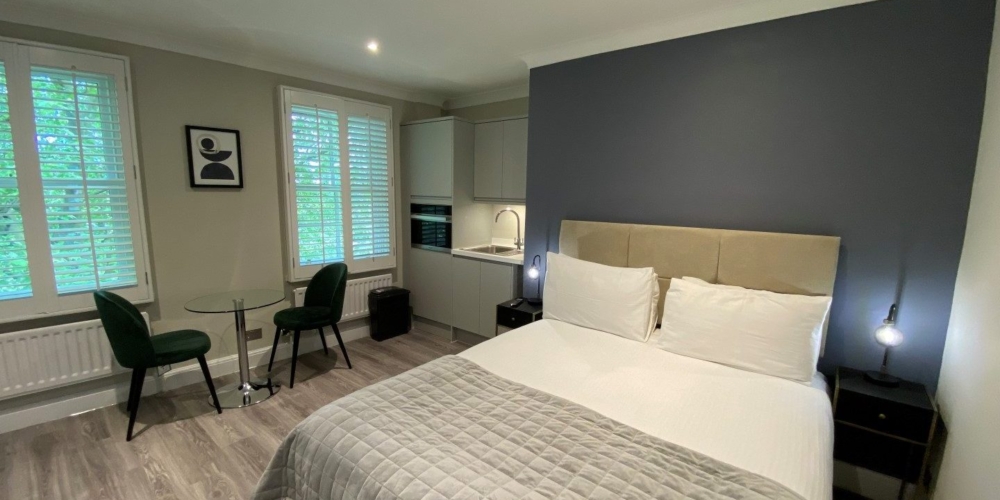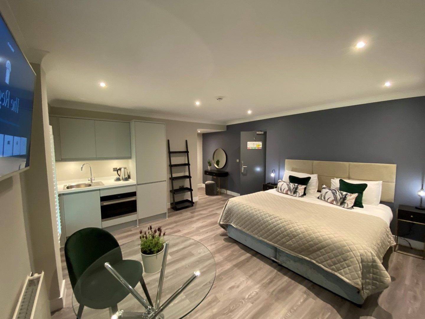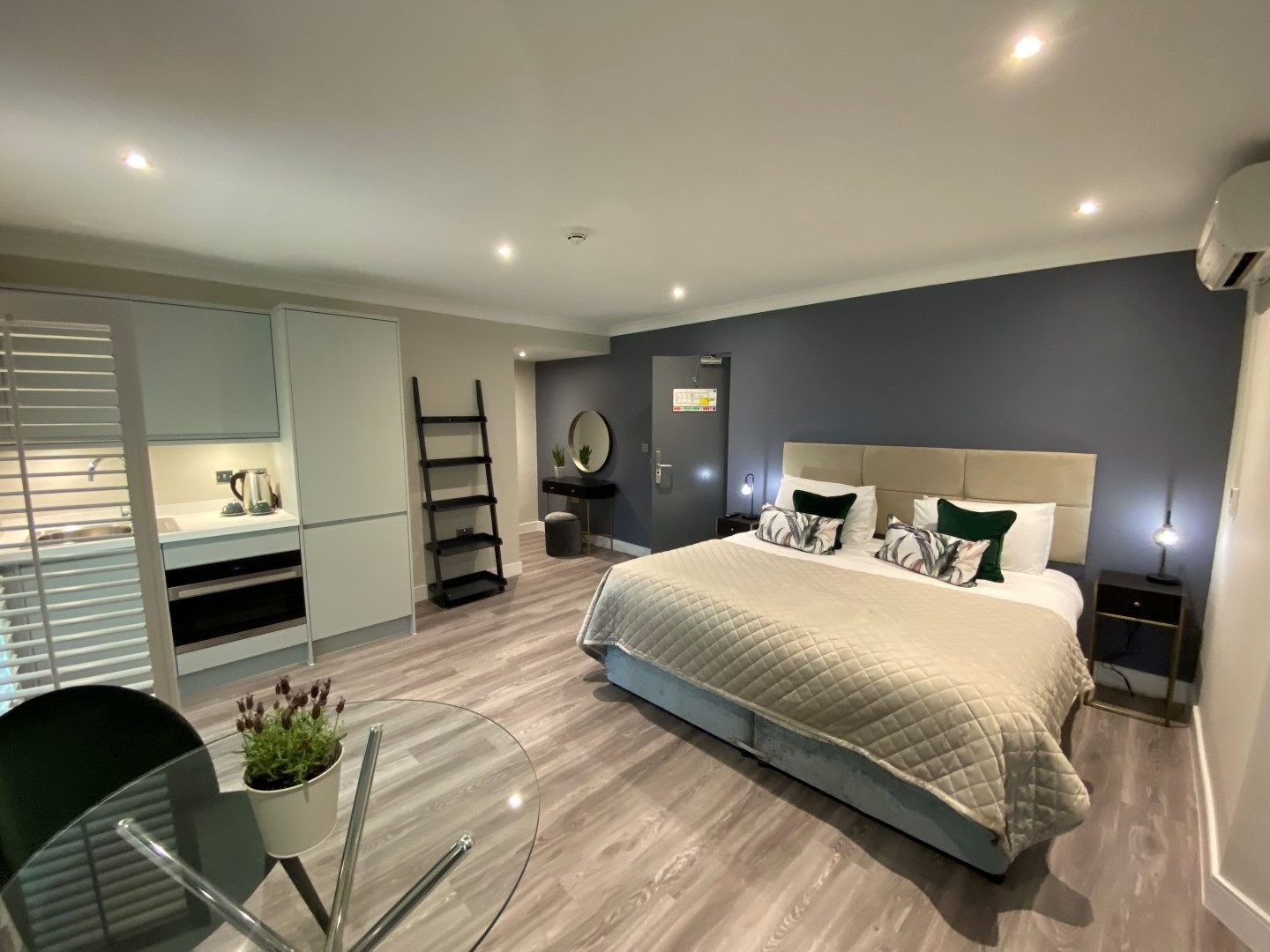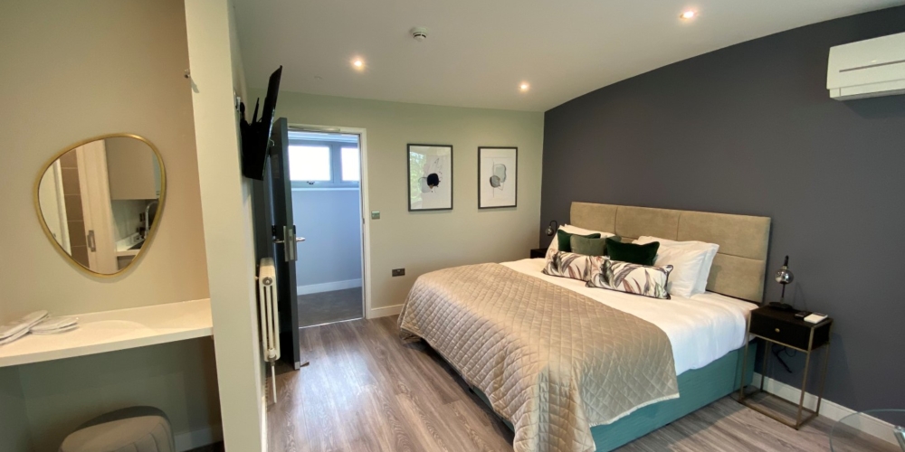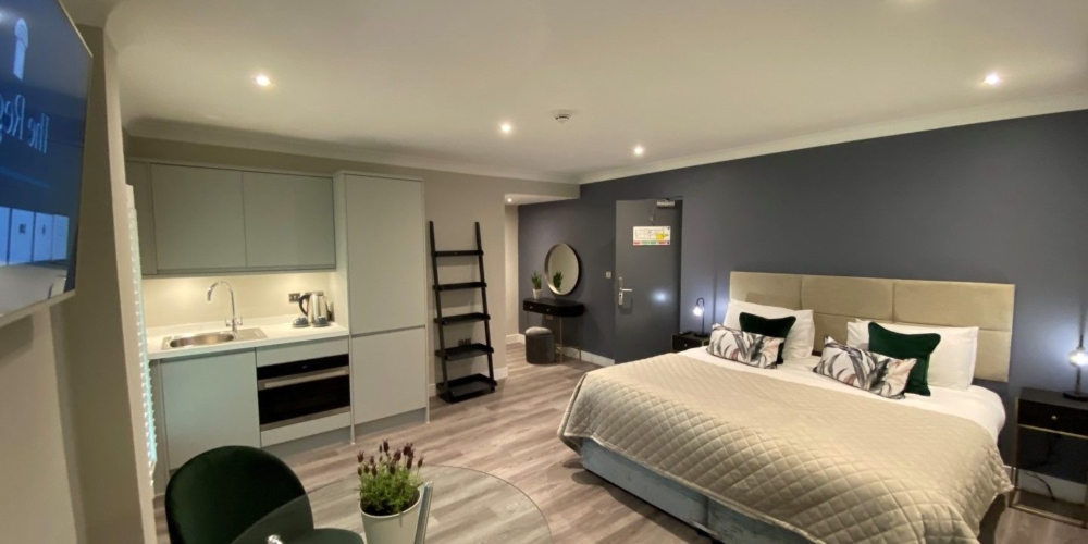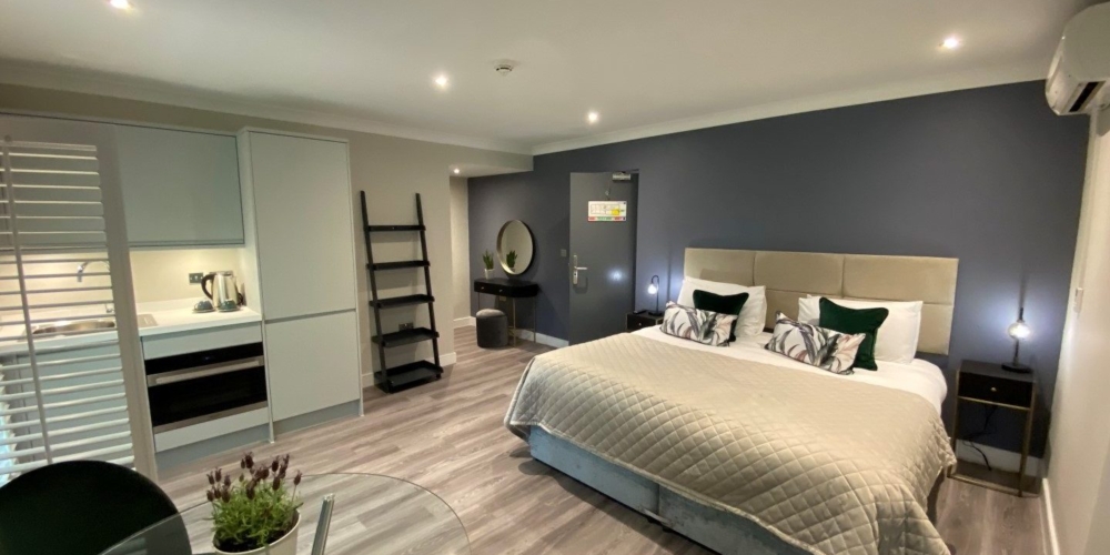 Originally a standard hotel, the client decided to develop the building into Cambridge’s first city centre aparthotel. The main works consisted of installing a new kitchenette within each of the bedrooms along with a total revamp of the ensuite shower rooms. Within the bedrooms, modern low energy light fittings were installed along with all new flooring, decorations and furniture. Within the ground floor a new reception lobby, meeting room and cafeteria were formed.