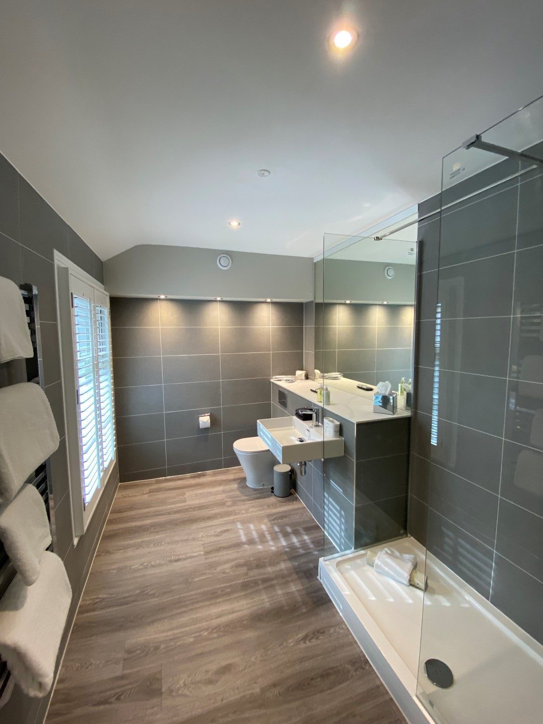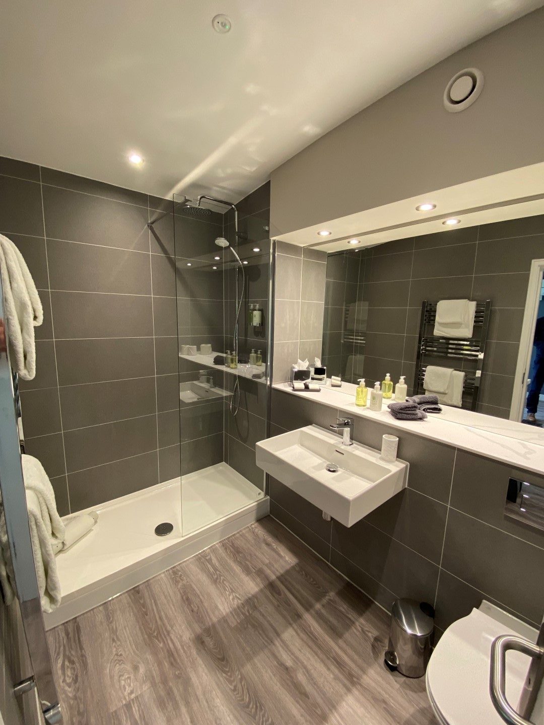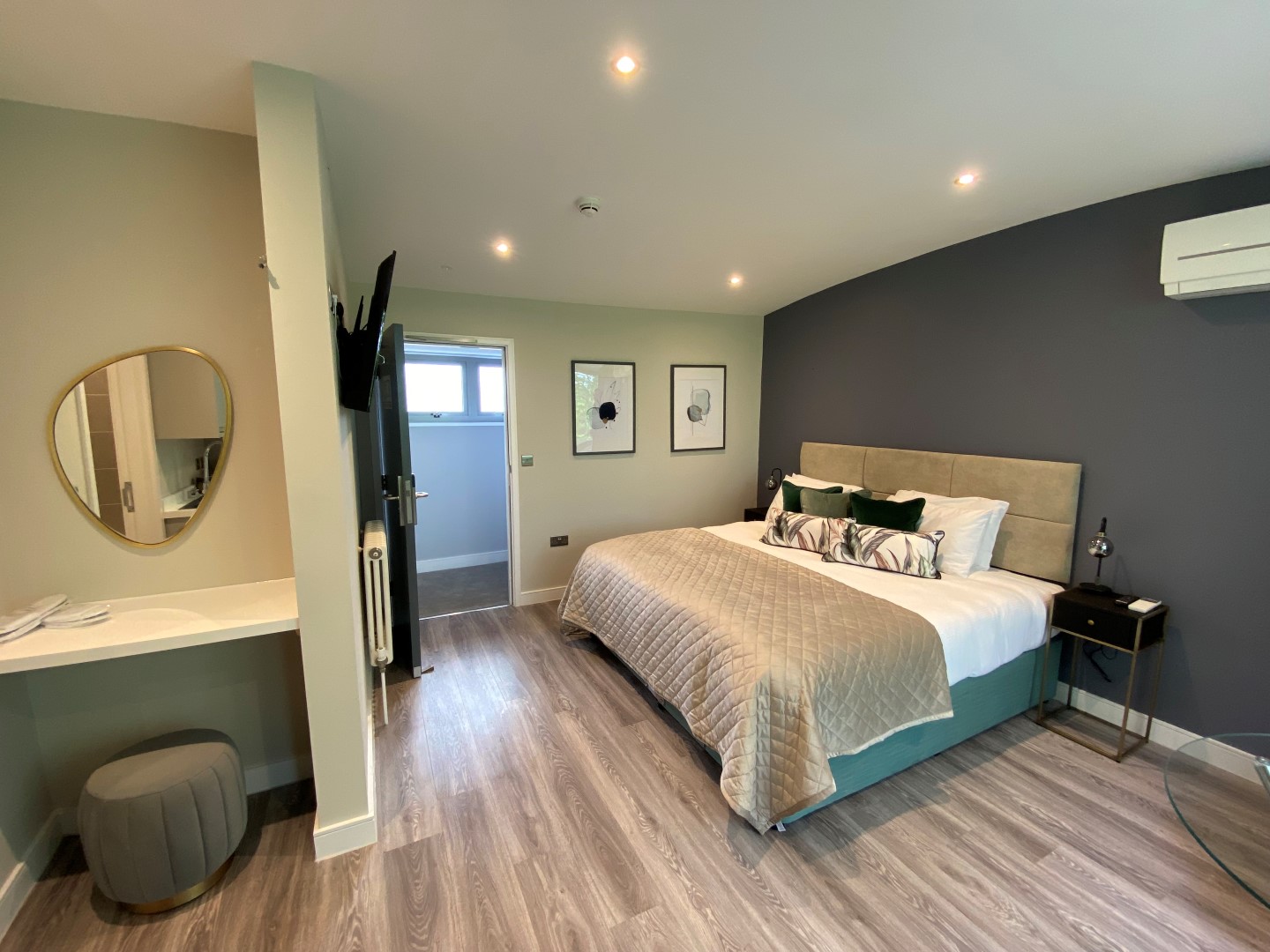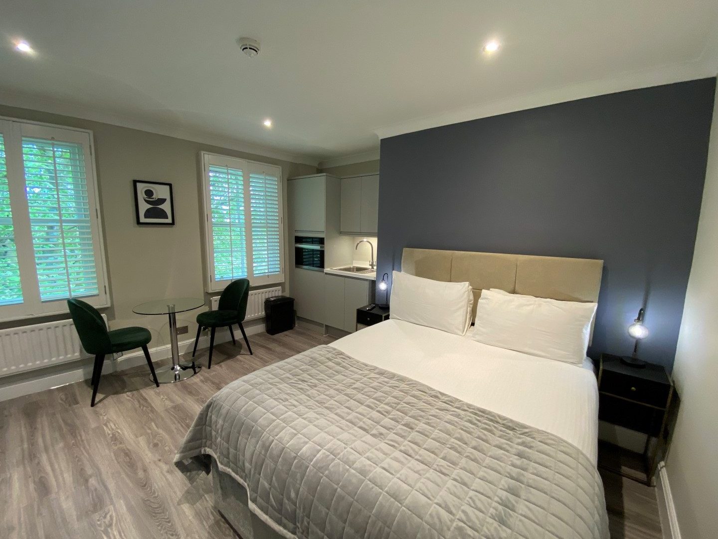 Originally a standard hotel, the client decided to develop the building into Cambridge’s first city centre aparthotel. The main works consisted of installing a new kitchenette within each of the bedrooms along with a total revamp of the ensuite shower rooms. Within the bedrooms, modern low energy light fittings were installed along with all new flooring, decorations and furniture. Within the ground floor a new reception lobby, meeting room and cafeteria were formed.