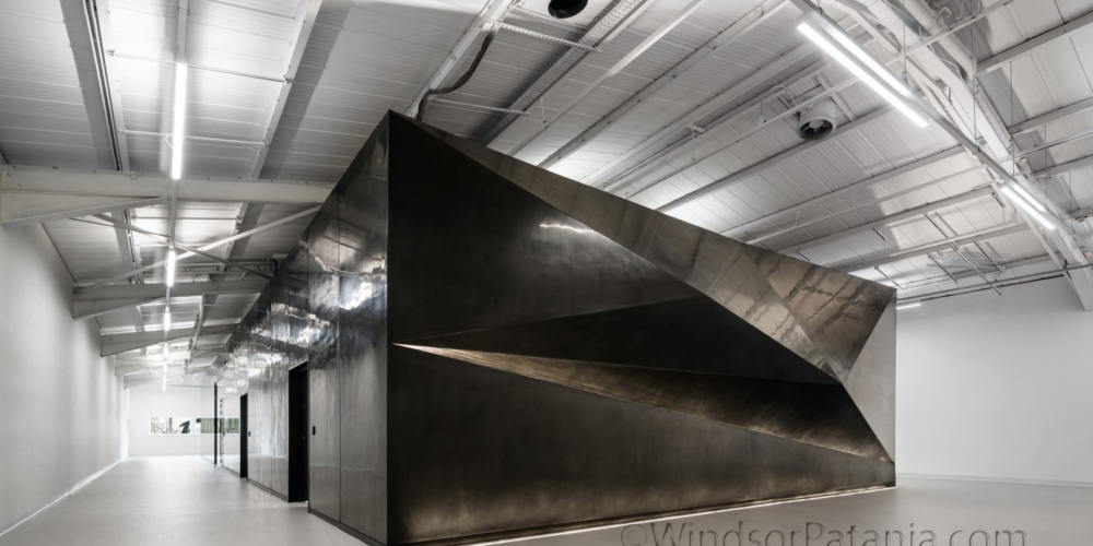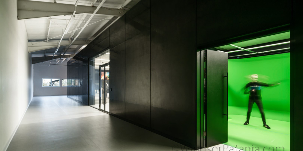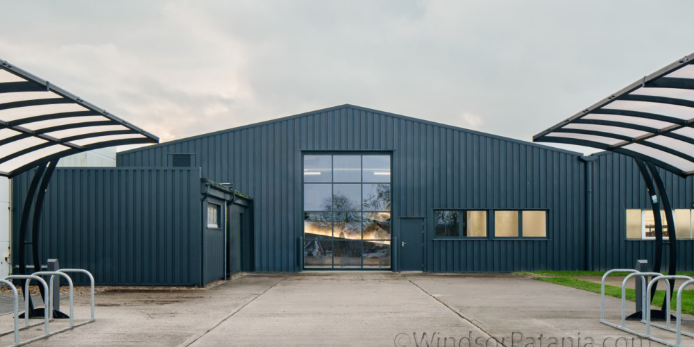 The architects wanted to bring a design element to The XR Lab that was in keeping with the captive character of the hub. The XR Lab maintains an exterior that is simple and inviting yet with an appearance of curiosity. The building was constructed by a steel portal frame, timber roof structure and deck which supported the M&E plant, metal stud walls which formed the external walls along with bespoke timber frame and plasterboard forming the unique feature end panels. The finish on the outside was polished plaster with acoustic panels to the inner walls. Within the lecture theatre this stored all the virtual reality equipment and an entire teaching wall with floor to ceiling high screens where students will be sat at futuristic looking desks to immerse themselves into the digital world. The existing hanger was stripped back and painted white to make the XR lab stand even more out when looking in from the outside.